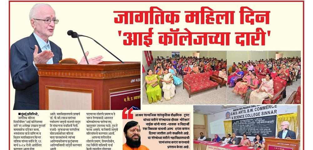 जागतिक महिला दिनानिमित्त ‘आई कॉलेजच्या दारी’ हा अनोखा उपक्रम गुरुवर्य मामासाहेब दांडेकर कला, भगवंतराव वाजे वाणिज्य व विज्ञान महाविद्यालय सिन्नर नाशिक यांच्या वतीने दि. ११ मार्च २०२४ रोजी आयोजित करण्यात आला होता.
