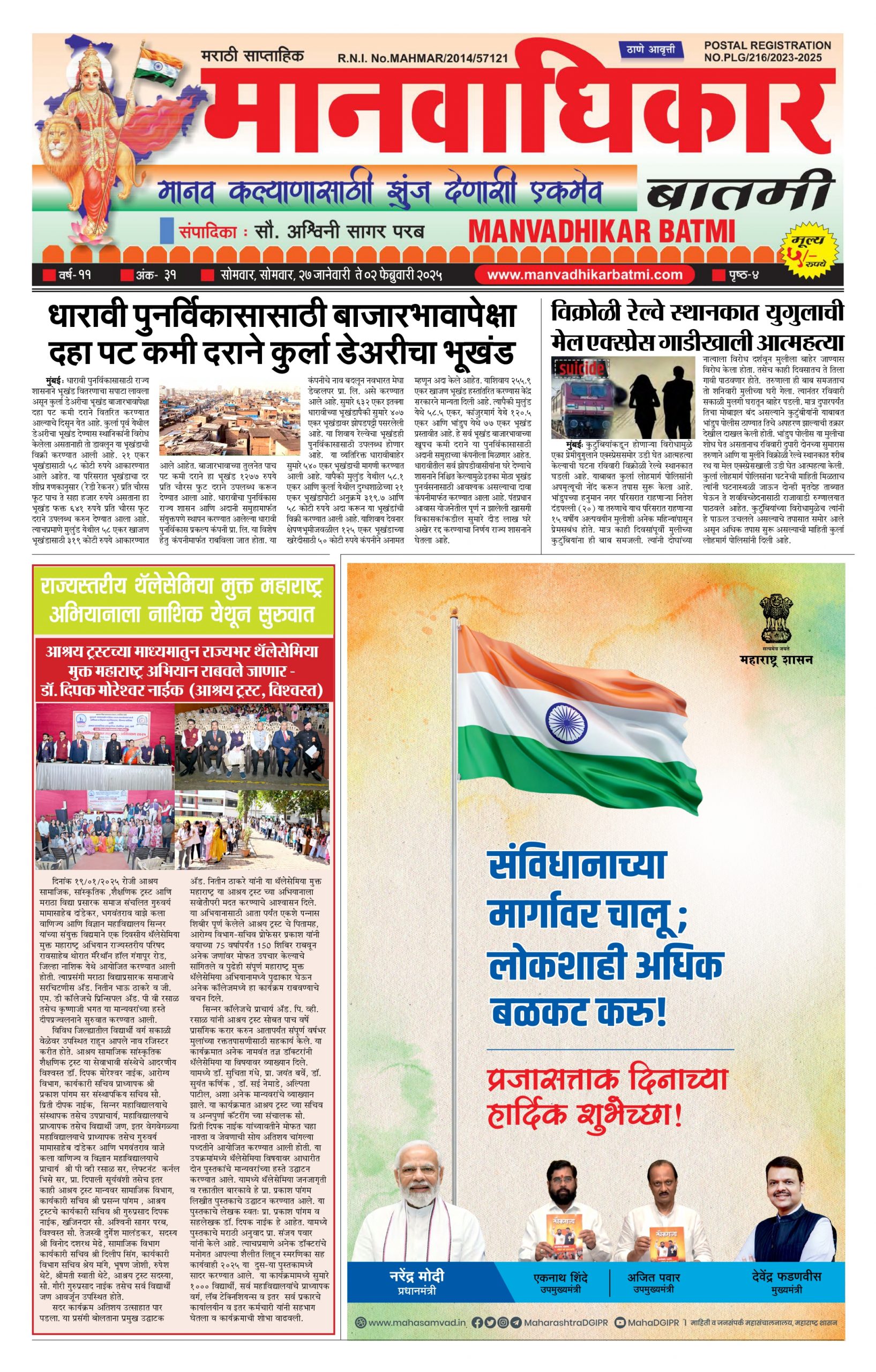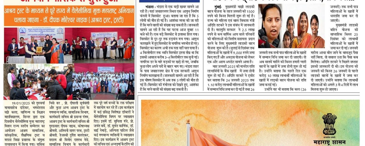 दिनांक १९/०१/२०२५ रोजी आश्रय सामाजिक, सांस्कृतिक ,शैक्षणिक ट्रस्ट आणि मराठा विद्या प्रसारक समाज संचलित गुरुवर्य मामासाहेब दांडेकर, भगवंतराव वाझे कला वाणिज्य आणि विज्ञान महाविद्यालय सिन्नर यांच्या संयुक्त विद्यमाने एक दिवसीय थॅलेसेमिया मुक्त महाराष्ट्र अभियान राज्यस्तरीय परिषद रावसाहेब थोरात मॅरेथॉन हॉल गंगापूर रोड, जिल्हा नाशिक येथे आयोजित करण्यात आली होती.