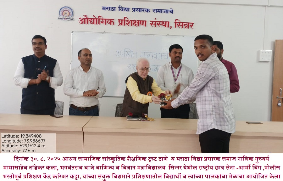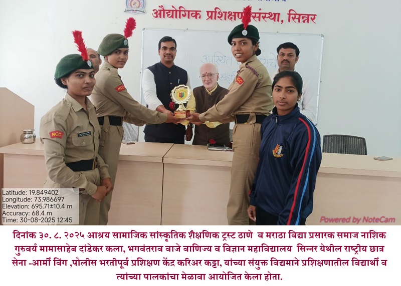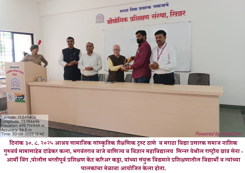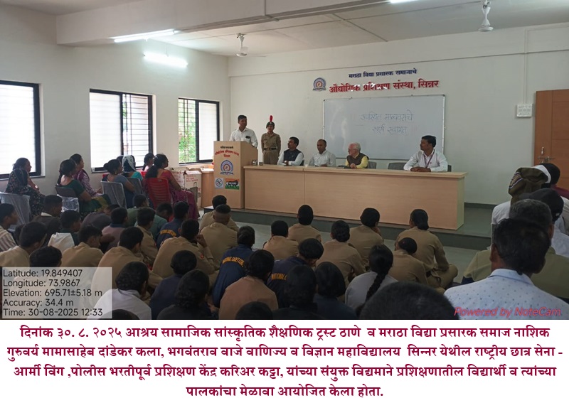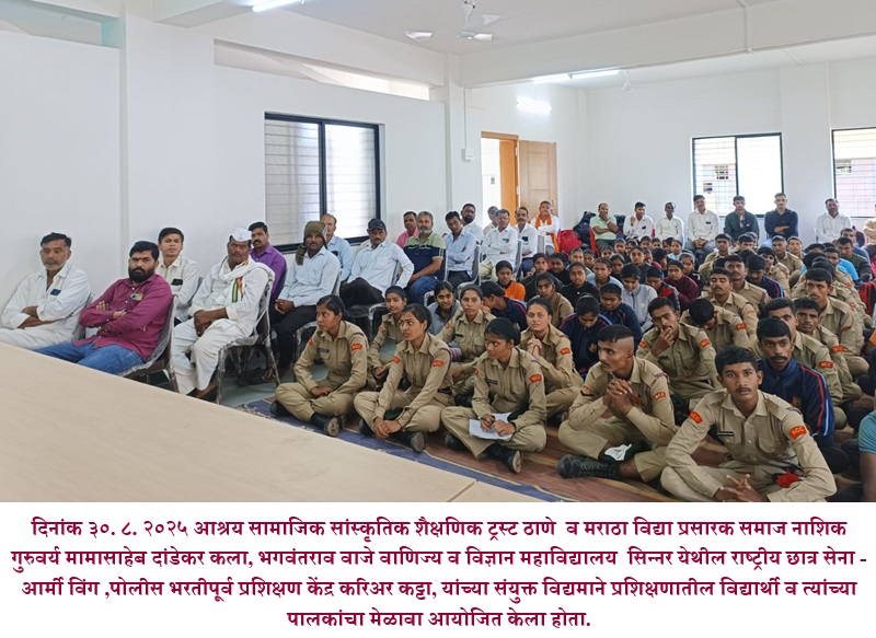 दिनांक ३०. ८. २०२५ सिन्नर येथील राष्ट्रीय छात्र सेना -आर्मी विंग ,पोलीस भरतीपूर्व प्रशिक्षण केंद्र करिअर कट्टा,
