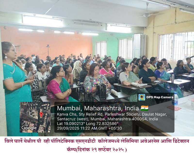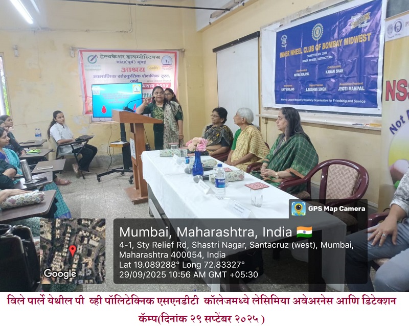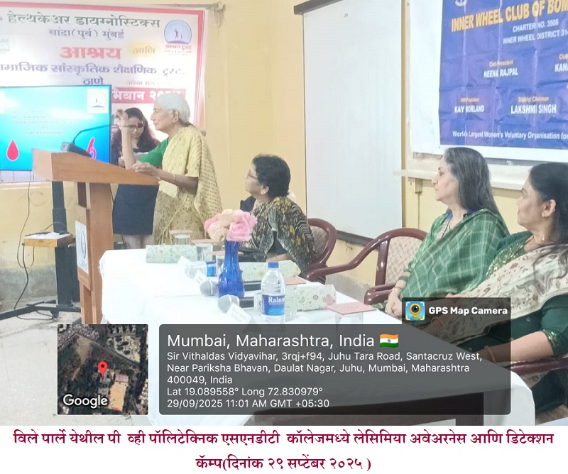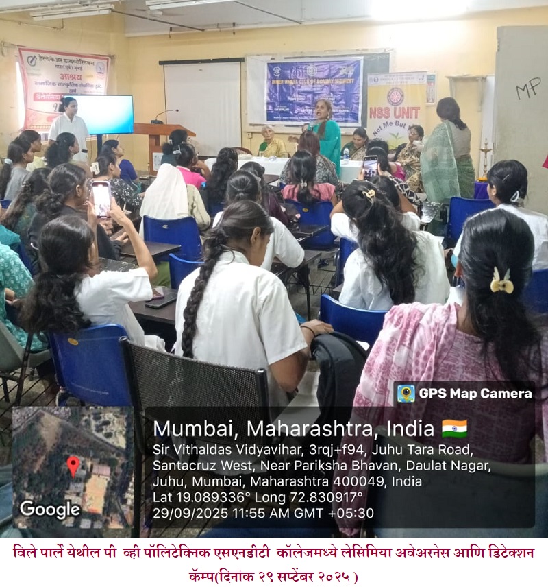 विले पार्ले येथील पी व्ही पॉलिटेक्निक एसएनडीटी कॉलेजमध्ये लेसिमिया अवेअरनेस आणि डिटेक्शन कॅम्प(दिनांक २९ सप्टेंबर २०२५ )