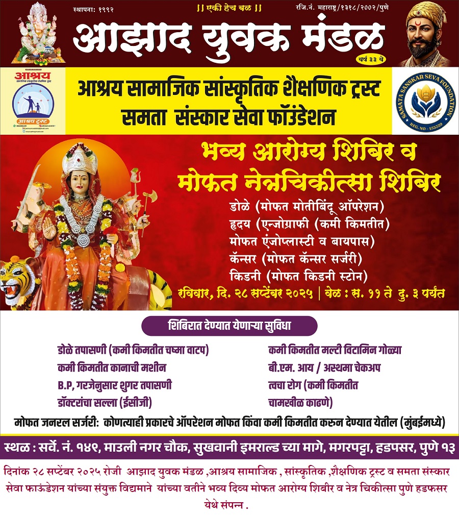 दिनांक २८ सप्टेंबर २०२५ रोजी पुणे हडपसर येथे भव्य दिव्य मोफत आरोग्य शिबीराचे आयोजन