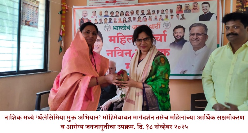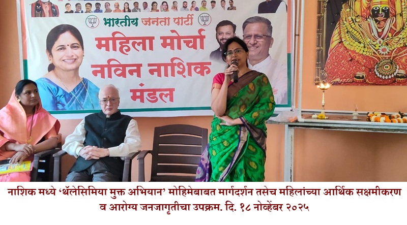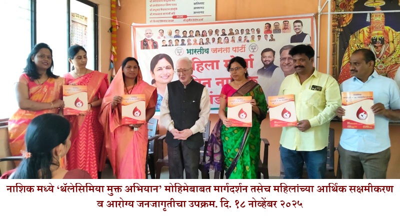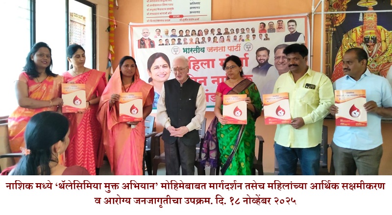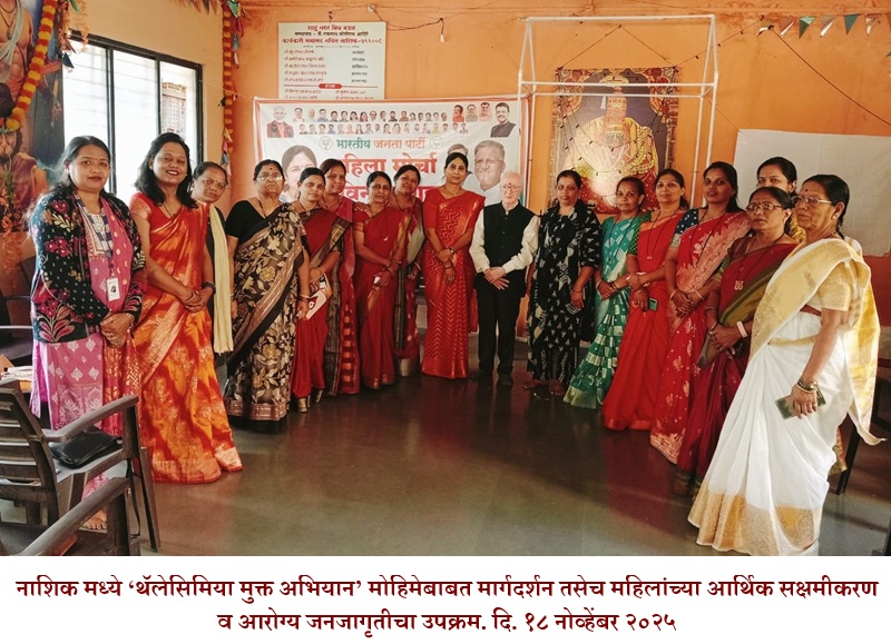 नाशिक मध्ये ‘थॅलेसिमिया मुक्त अभियान’ मोहिमेबाबत मार्गदर्शन तसेच महिलांच्या आर्थिक सक्षमीकरण व आरोग्य जनजागृतीचा उपक्रम. दि. १८ नोव्हेंबर २०२५