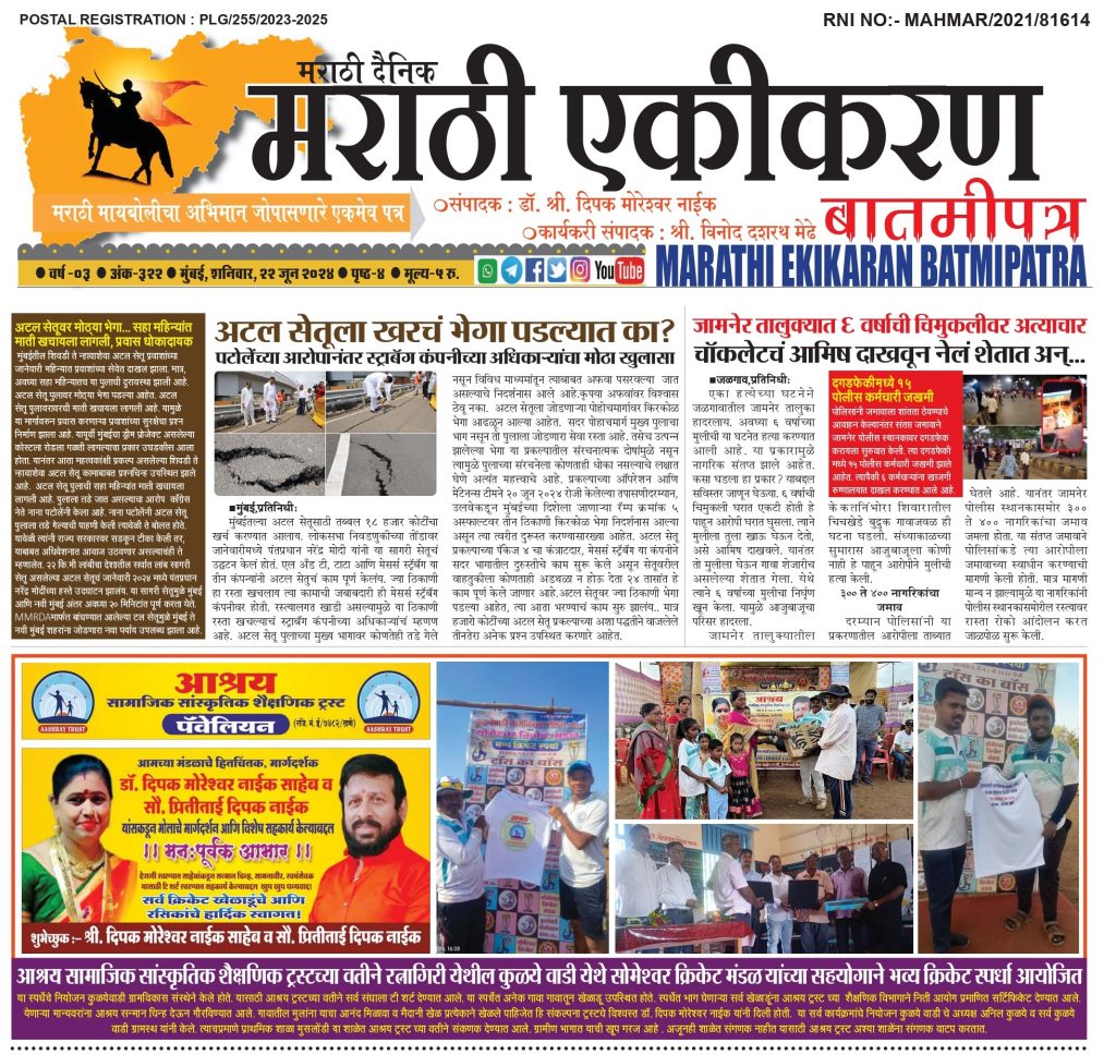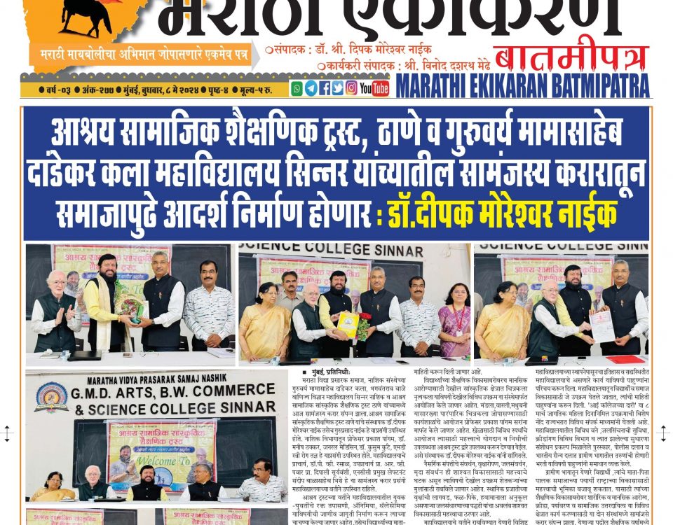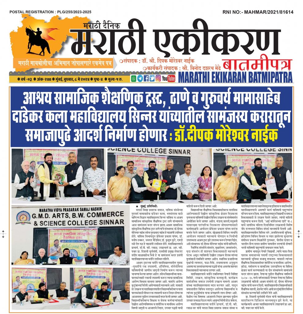 आश्रय सामाजिक सांस्कृतिक शैक्षणिक ट्रस्ट ठाणे व मराठा विद्या प्रसारक समाज, नाशिक सस्ंथेच्या गुरुवर्य मामासाहेब दांडकेर कला, भगवतंराव वाजे वाणिज्य विज्ञान महाविद्यालय सिन्नर नाशिक यांच्यामध्ये झालेल्या […]