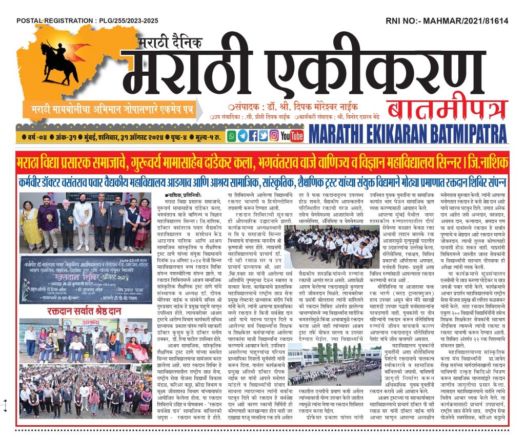 मराठा विद्या प्रसारक समाजाचे गुरुवर्य मामासाहेब दांडेकर कला भगवंतराव वाजे वाणिज्य व विज्ञान महाविद्यालय सिन्नर, डॉक्टर वसंतराव पवार वैद्यकीय महाविद्यालय व संशोधन केंद्र आडगाव नाशिक आणि […]