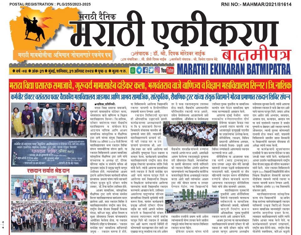 मराठा विद्या प्रसारक समाज संस्था नाशिक संचलित गुरुवर्य मामासाहेब दांडेकर कला, भगवंतराव वाजे वाणिज्य विज्ञान महाविद्यालय आणि आश्रय सामाजिक,सांस्कृतिक शैक्षणिक ट्रस्ट ठाणे यांच्या संयुक्त विद्यमाने सिन्नर […]