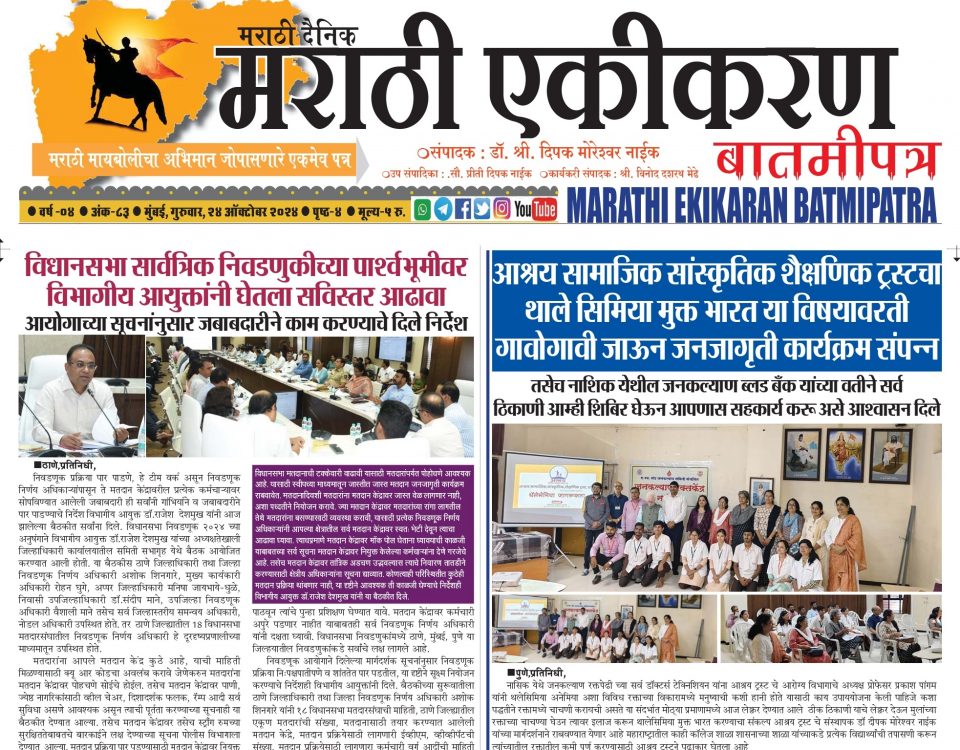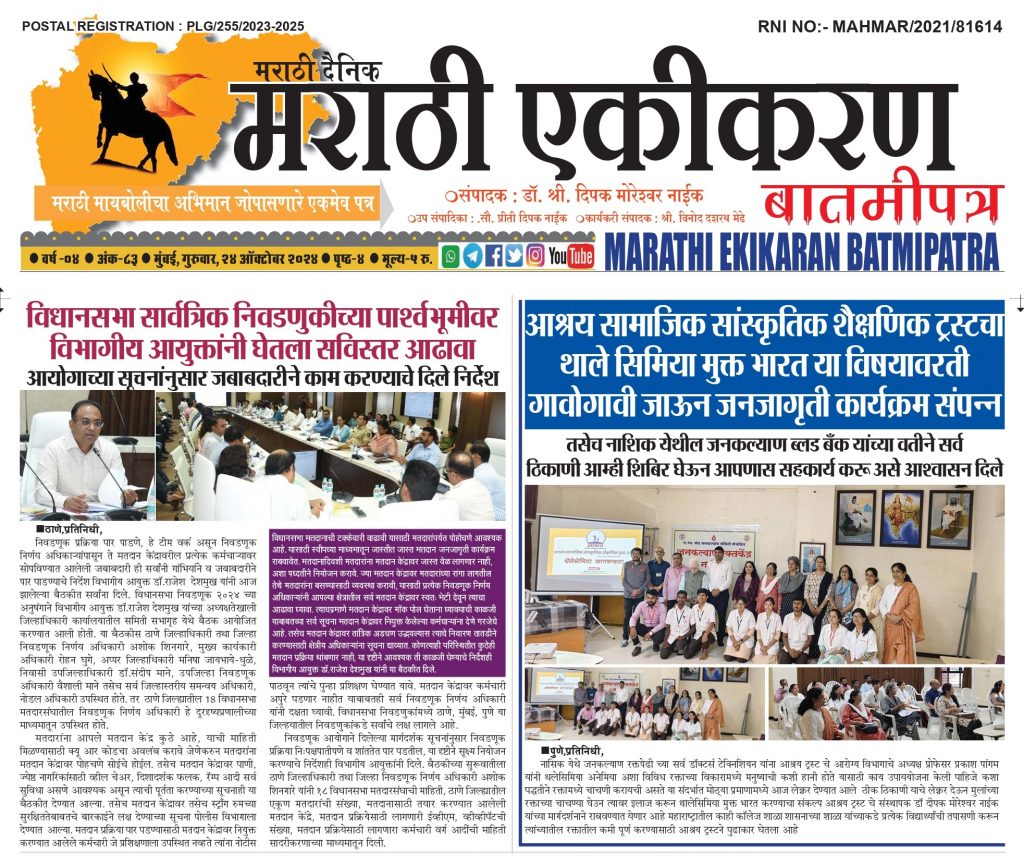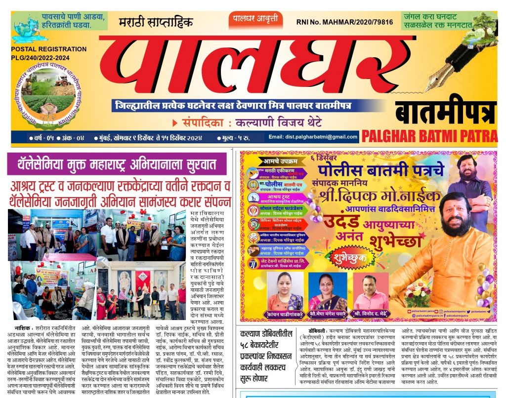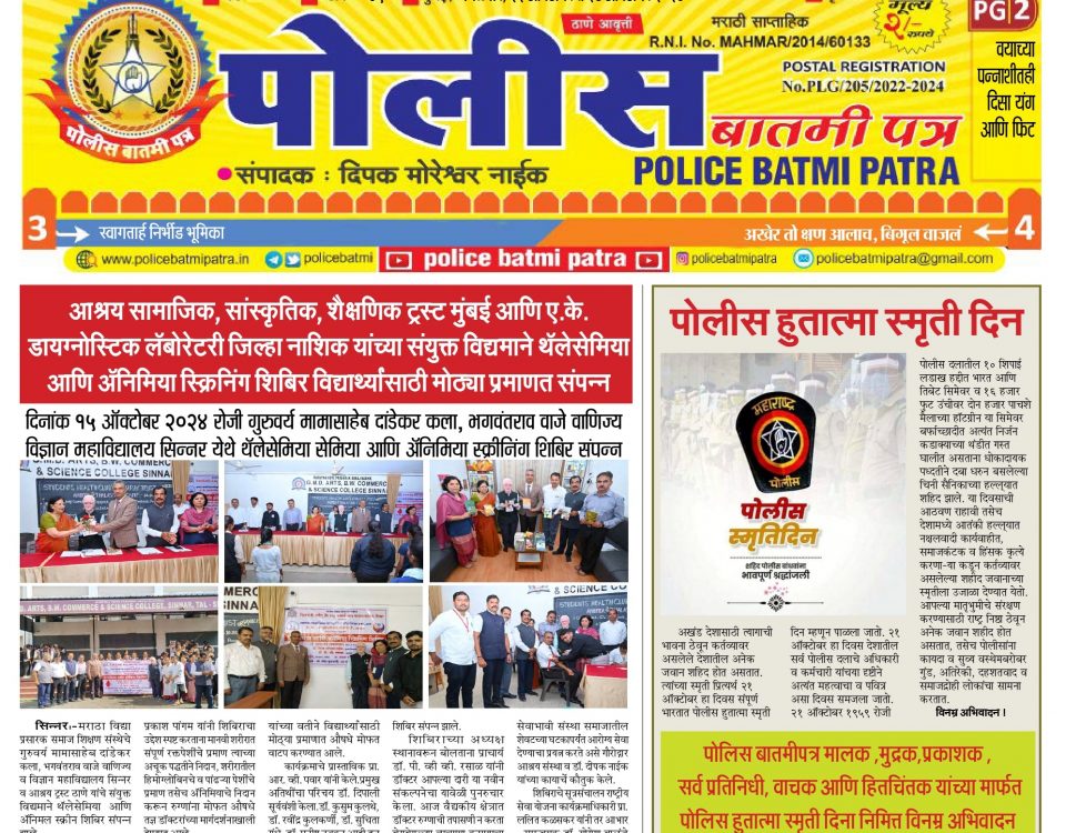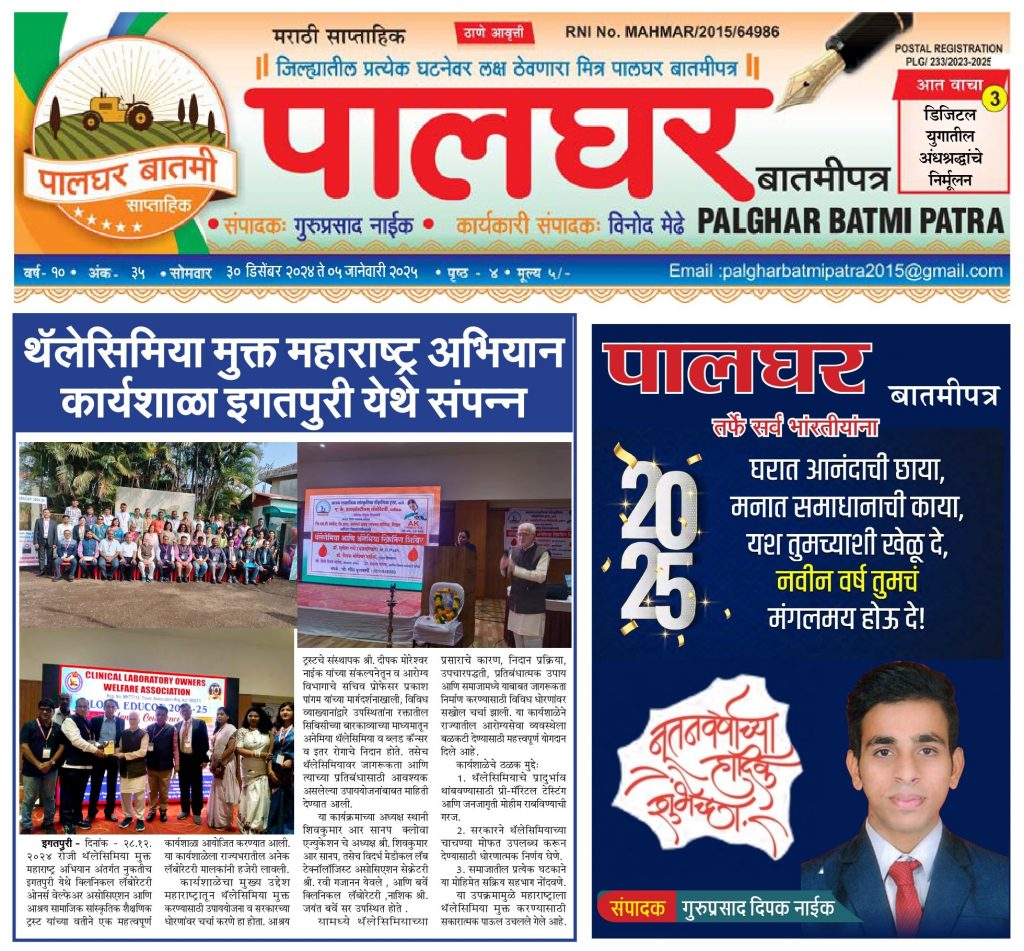 दिनांक ३०.११.२०२४ – नाशिक रोड येथे थॅलसेमिया चाचणी केंद्राची स्थापना एके डायग्नोस्टिक लॅबोरेटरीज, नाशिक आणि आश्रय सामाजिक सांस्कृतिक शैक्षणिक ट्रस्ट, भाईंदर यांच्या संयुक्त विद्यमाने करण्यात आली […]