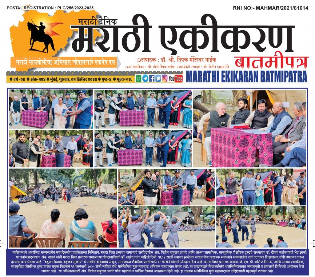 दिनांक 30 नोव्हेंबर 2024 रोजी मराठा विद्या प्रसारक समाजाचे गुरुवर्य मामासाहेब दांडेकर भगवंतराव वाजे कला वाणिज्य आणि विज्ञान महाविद्यालय सिन्नर येथे एनसीसी कार्यक्रमांमध्ये उपस्थिती दर्शविताना.