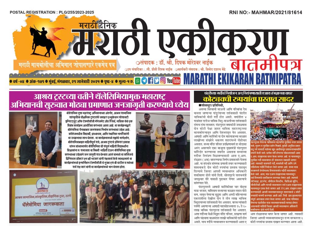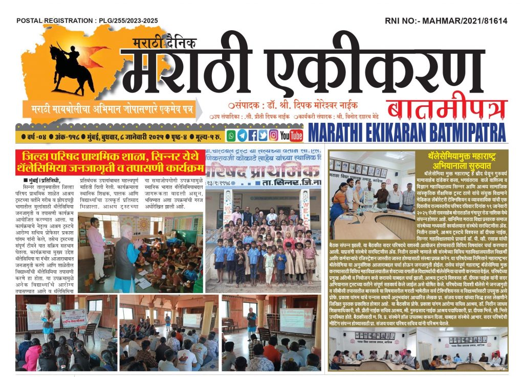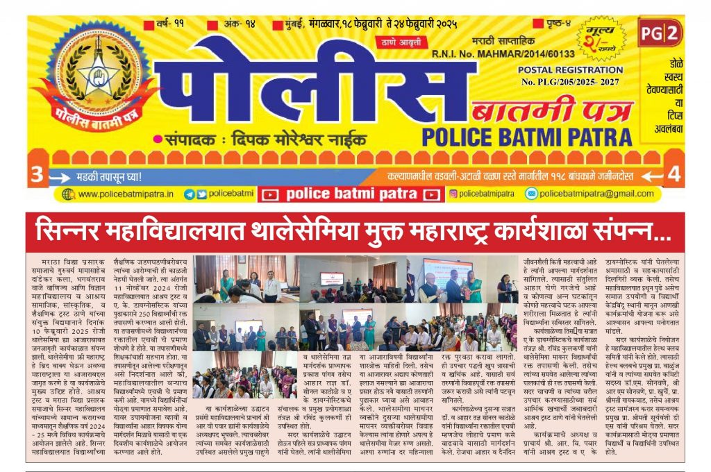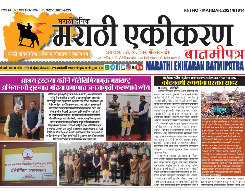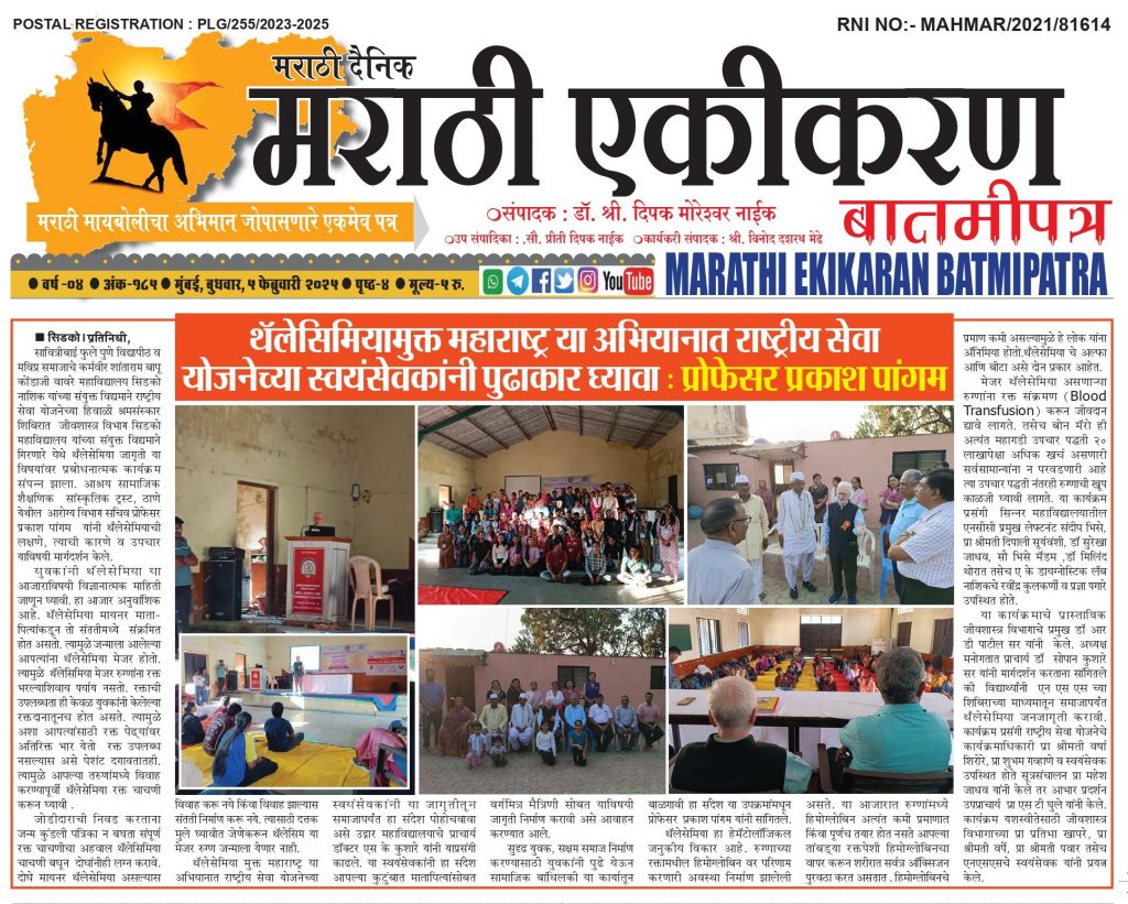 आश्रय सामाजिक,सांस्कृतिक,शैक्षणिक ट्रस्ट चे आरोग्य विभाग कार्यकारी सचिव प्रोफेसर श्री प्रकाश पांगम सर यांनी आयटी विभाग व्यवस्थापन व संशोधन केंद्र गंगापूर रोड नाशिक येथे थॅलेसेमिया मुक्त […]